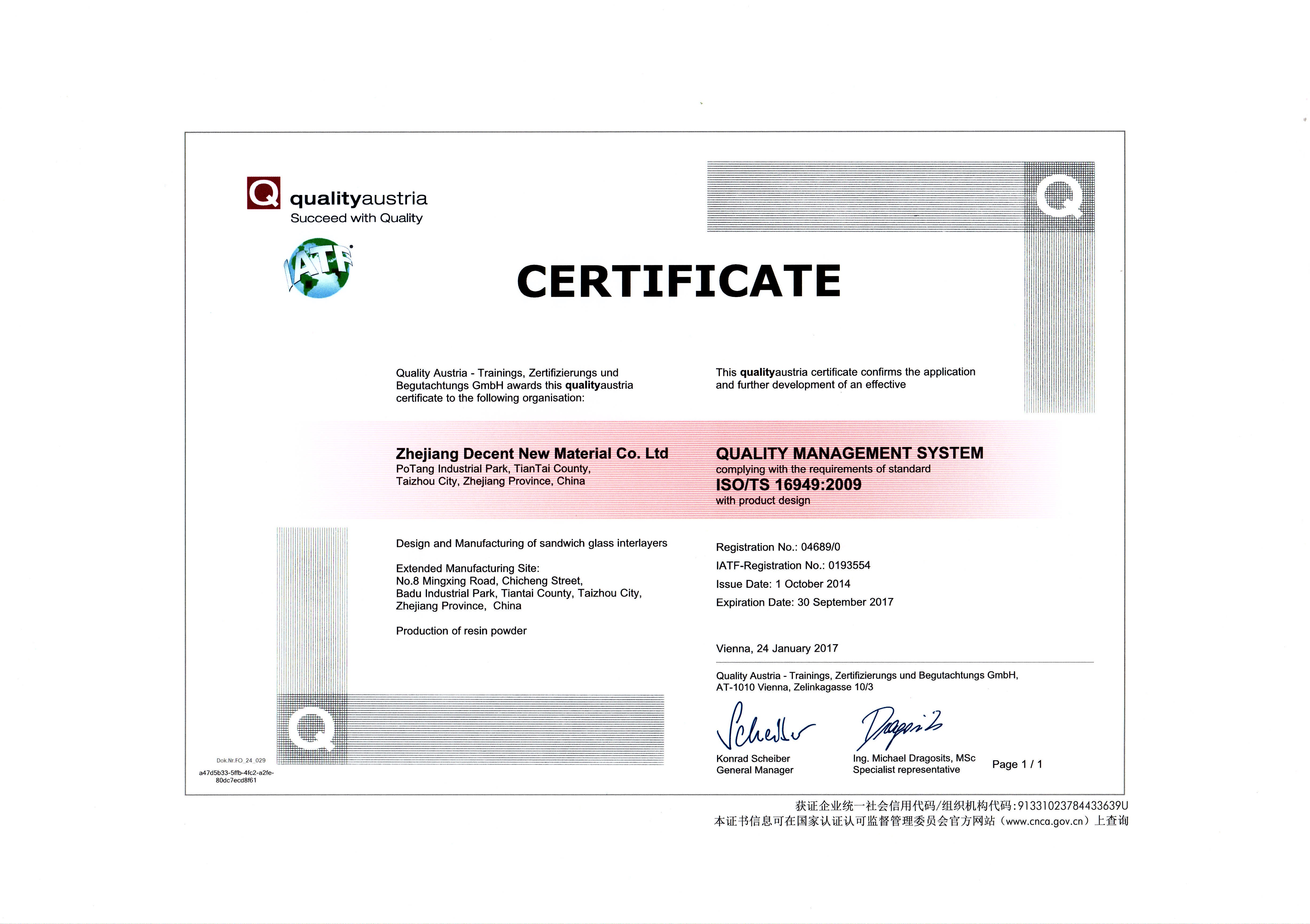 PVB (Polivinil Bütiral) Üretimi & Sertifikalar